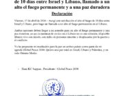 Declaración del Sr. KC sobre el alto el fuego de 10 días entre Israel y Líbano, llamado a un alto el fuego permanente y a una paz duradera