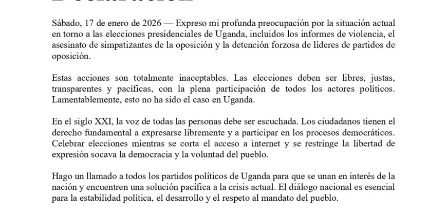 Declaración del Sr. KC sobre la violencia en la República de Níger, ofreciendo mediación para la paz Declaración Jueves, 29 de enero de 2026 – Estoy profundamente preocupado por la crisis en curso en la República de Níger, tras los informes de intensos tiroteos y explosiones en la capital, Niamey.