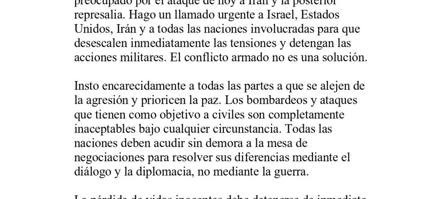Declaración del Sr. KC sobre las muertes de civiles y la crisis humanitaria en el Líbano y los conflictos en