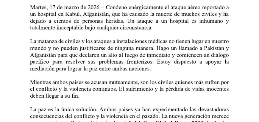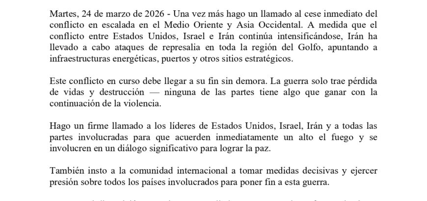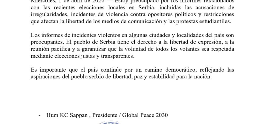 Observaciones del Presidente Sr. KC sobre la Violencia en Serbia Declaración Miércoles, 1 de abril de 2026 — Estoy preocupado por los informes relacionados con las recientes elecciones locales en Serbia, incluidas las acusaciones de irregularidades, incidentes de violencia contra opositores políticos y restricciones que afectan la libertad de los