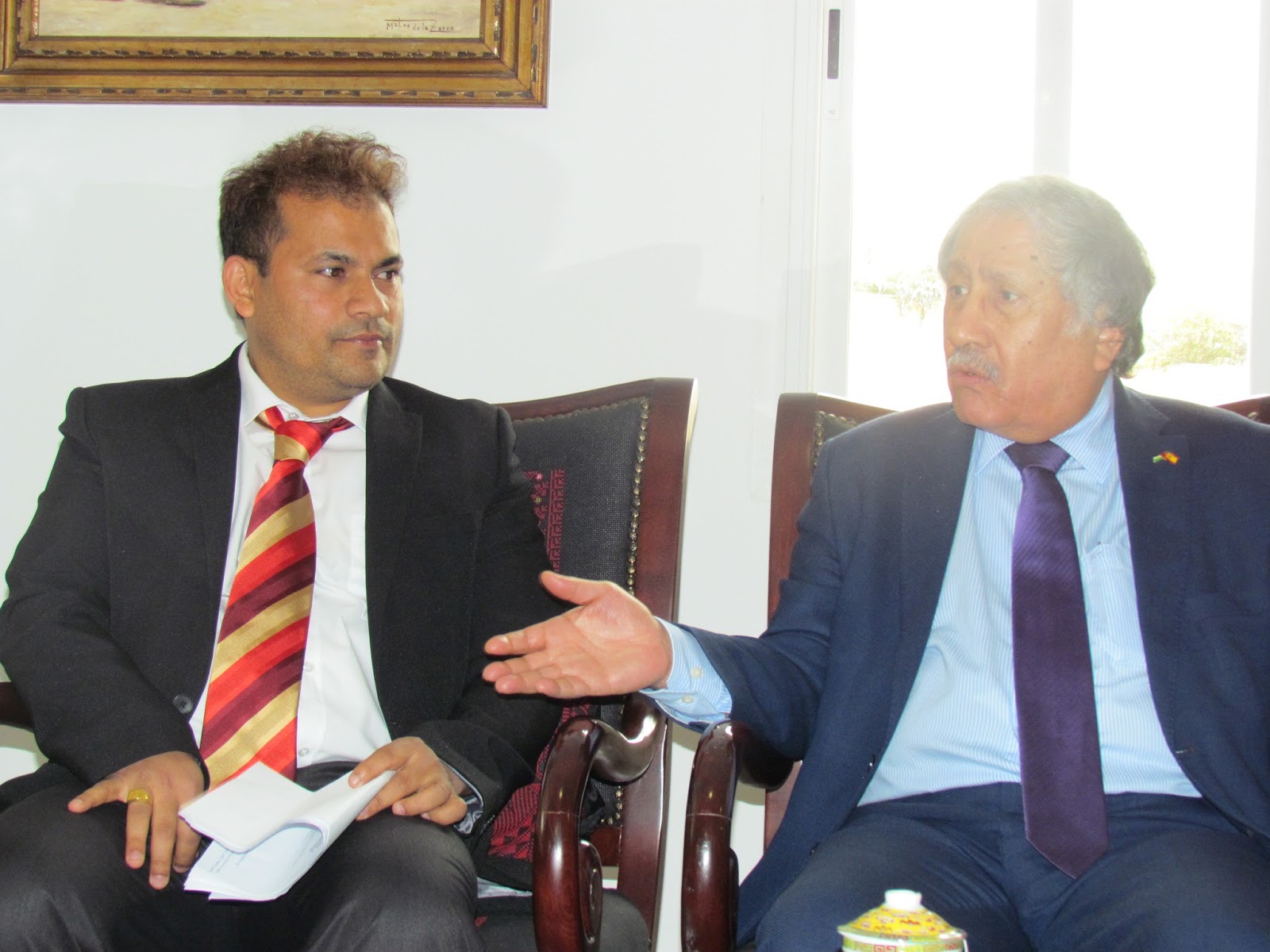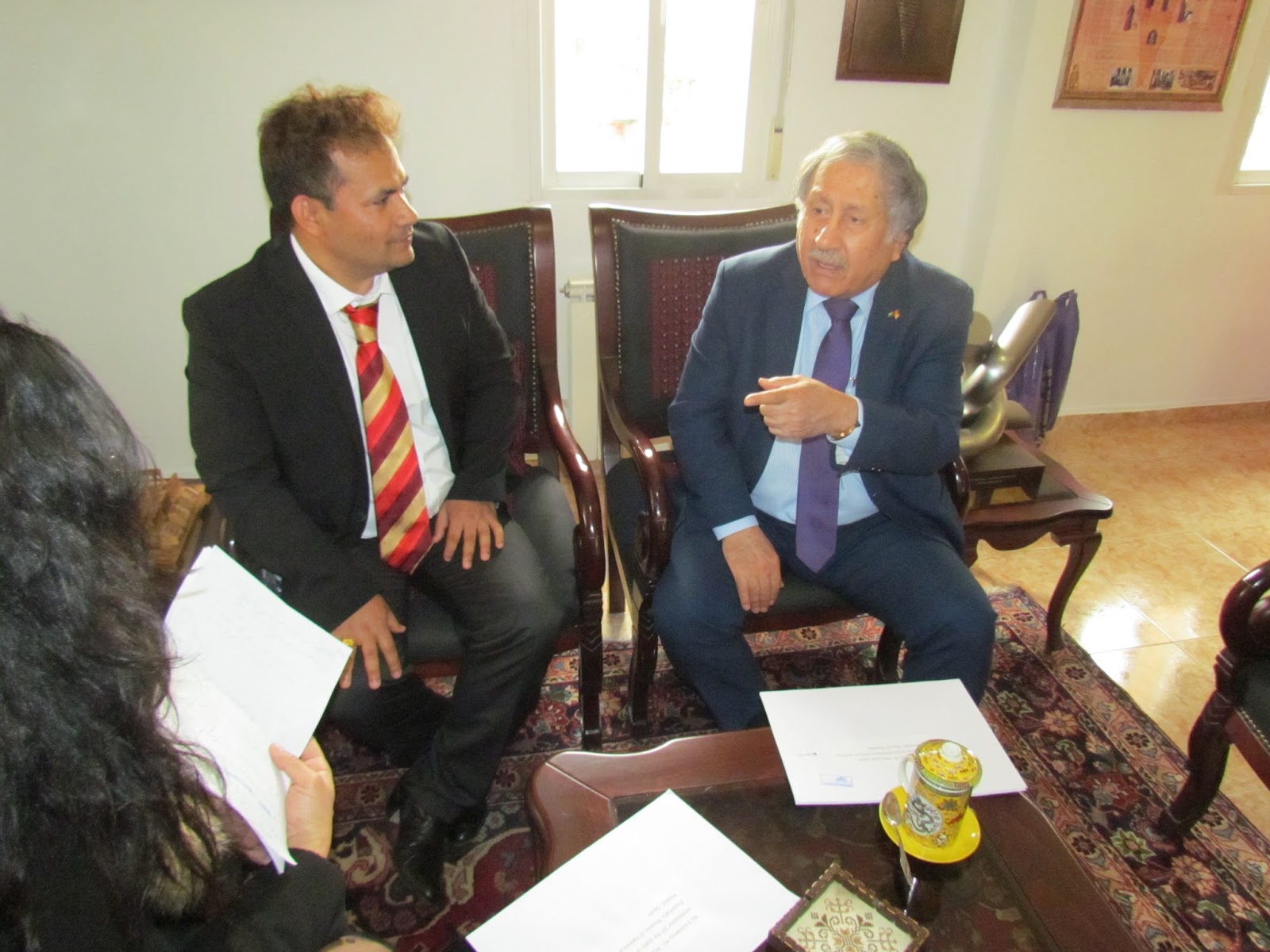Madrid, 23 de febrero de 2017. Hoy se celebró en la Embajada de Palestina en Madrid una reunión entre su excelencia el señor Embajador de Palestina en Madrid, Musa Amer Odeh y el Presidente de la Fundación Europa Paz (FEP), Sappan KC, Hum Bdr.